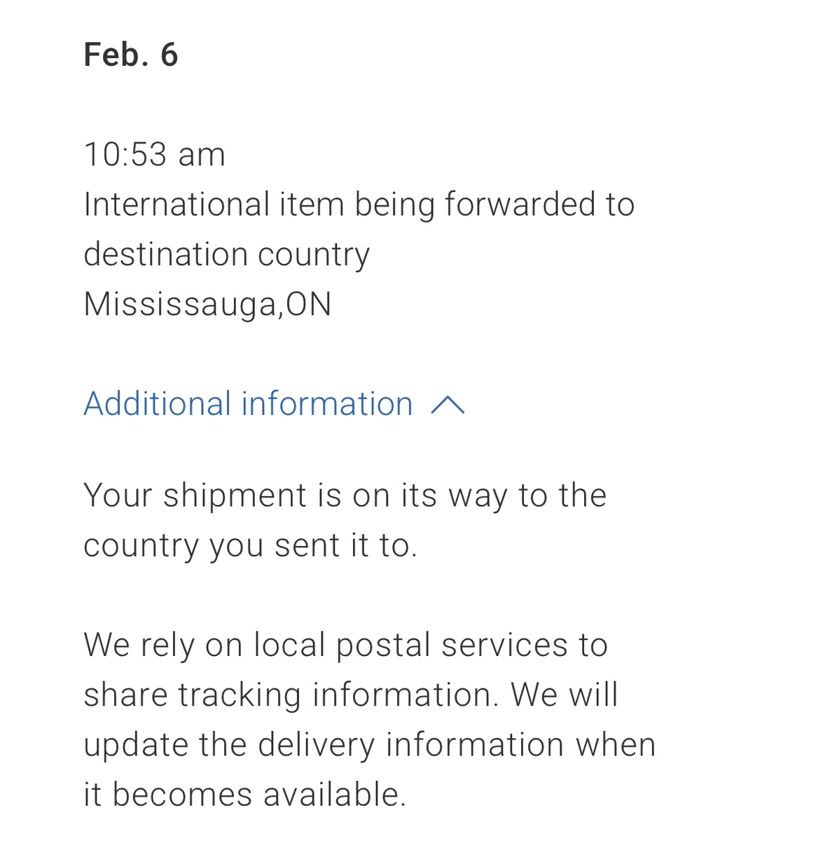 7(金) 6:38 荷物が日本へ向かっているとのこと。この頃から日本郵便の追跡サイトでも情報が見られるようになります。この後からは日本郵便のサイトからの方が更新が早くなります。